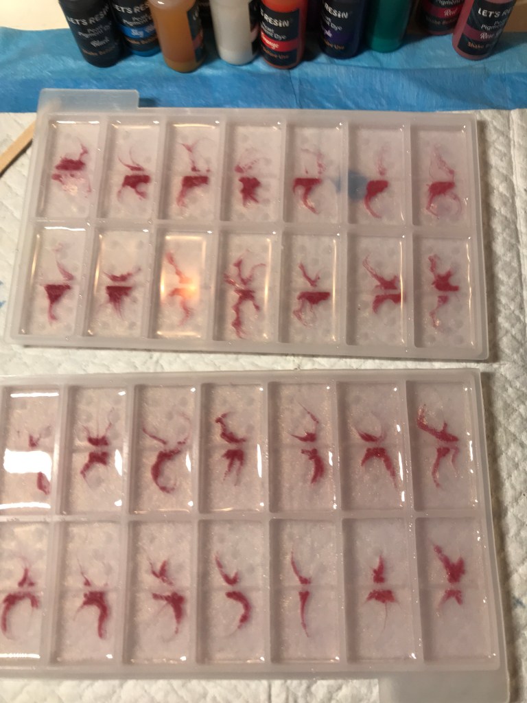 My son and I recently got into creating some resin dominoes. Board games and games like dominoes are all the rage in my house. I’m learning more and more about this sticky substance and I plan to make more art pieces. These are his first set of dominoes and we have another set waiting to cure.